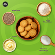 Atta Jeera Cookies: Whole wheat atta, unrefined khand sugar, rice bran oil, butter, milk powder, jeera, baking powder, soy lecithin, salt