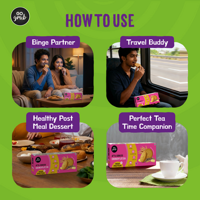 - Tea time snack, Travel buddy, Binge partner, 4PM hunger.
