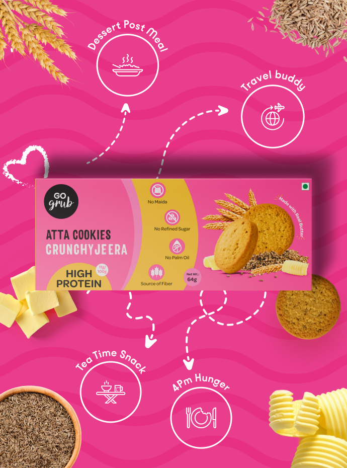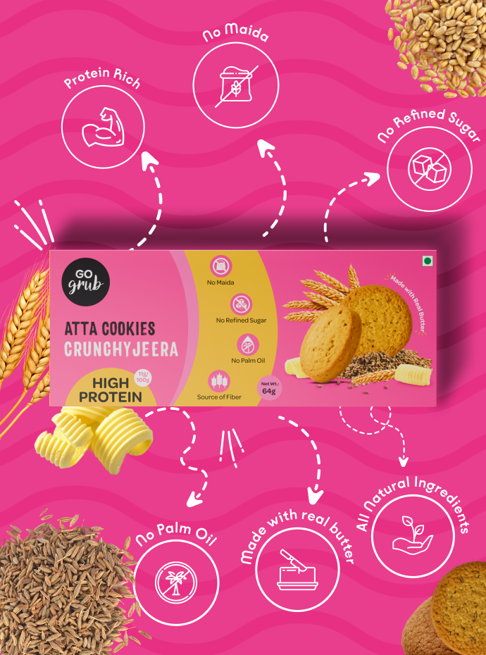Jeera Atta Cookies | No Maida | No Refined Sugar | High Protein | No Palm Oil | 64g