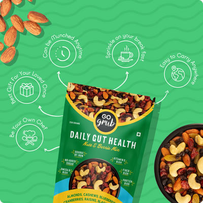 Daily Gut Health (Nuts & Berries Mix) | Healthy Trail Mix | Antioxidant Rich | Prebiotic Fiber Rich | 250g