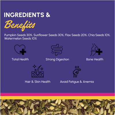 This 5 in 1 seeds mix is a magic portion, This mix has 5 perfectly roasted seeds that give a great mouthfeel.