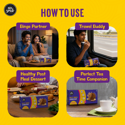 - TTea time snack, Travel buddy, Binge partner, 4PM hunger, Post meal dessert