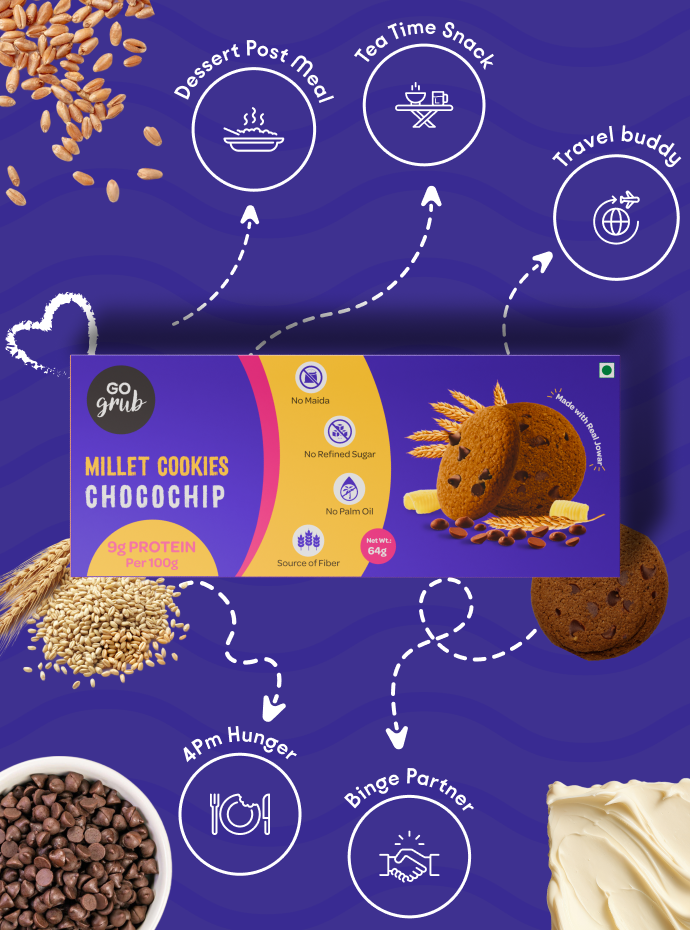 Millet Chocochip Cookies | No Maida | No Refined Sugar | Made with Millets | No Palm Oil | 64g
