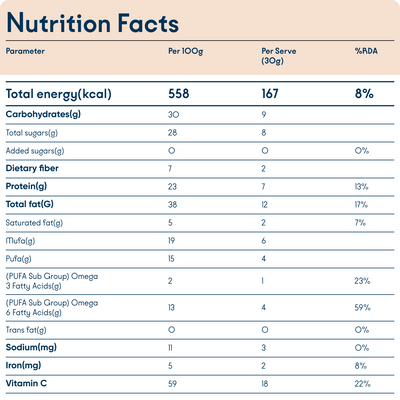 This mix has 5 perfectly roasted seeds with 3 crunchy nuts that give a great mouthfeel.